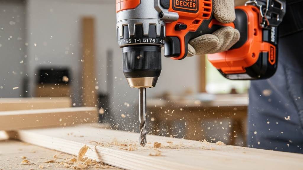 BLACK+DECKER cordless drill in action drilling wood for DIY project Jessica Hanshaw January 18, 2026 Comments are off
